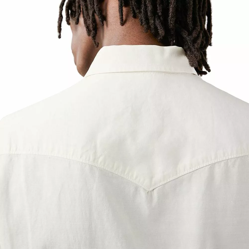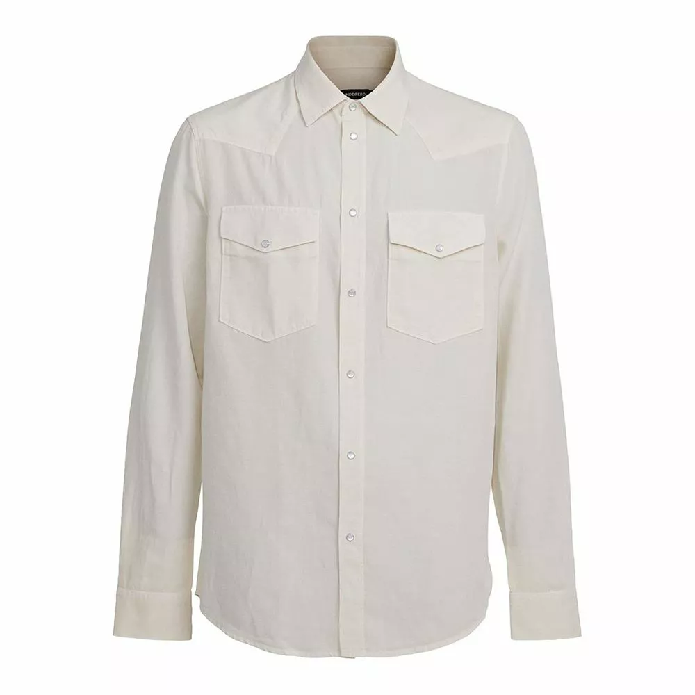 West Regular Fit Tencel Shirt är en skjorta från J.Lindeberg med sin design och detaljer inspirerad från western. Skjortan har en normal passform med klassisk spetsig skjortkrage, emaljerade tryckknappar, två bröstfickor fram och ärmslut med knäppta slitsar.